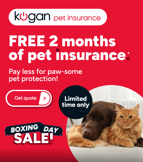+This offer commences on 12:00AM AEDT 22 December 2025 and ends on 11:59PM AEDT 1 February 2026 (Offer Period). Offer provides new customers with 2 months free in their first policy year only when they purchase a Kogan Pet Insurance Policy during the Offer Period (Offer). If you choose to pay by monthly or fortnightly instalments, you will not be charged an instalment for the first 2 months of your policy, from the selected policy commencement date. The first premium will be charged on the first premium instalment of the 3rd month of your policy. For annual payments, the 2 months free will be deducted from your first policy year premium at the time of purchase. Offer applies to new Kogan Pet Insurance policies purchased during the Offer Period, online or by phone using promo code BOXINGDAY. Offer will cease if you change your level of cover. Not available with any other offer except for multi-pet discount for additional pets. Offer subject to the terms and conditions of the Kogan Pet Insurance policy. Eligibility criteria applies for Kogan Pet Insurance and is subject to the Kogan Pet Insurance terms and Conditions (Refer to the Product Disclosure Statement). Kogan Pet Insurance reserves the right to withdraw, vary or extend this Offer at any time, without notice.